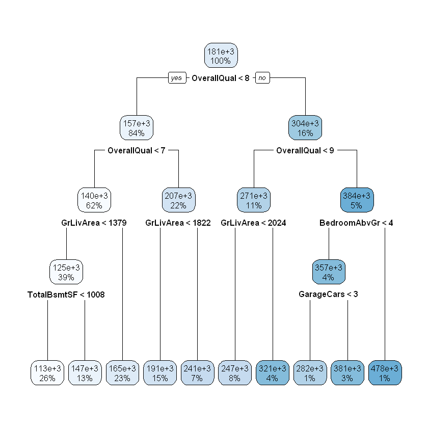 housingModel <- rpart(SalePrice ~ ., data = housing)